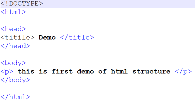 All HTML documents must start with a document type declaration: <!DOCTYPE html>.